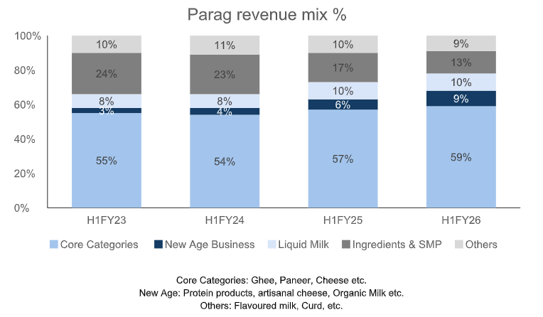 For Parag also, while VAP mix was always on the higher side >70%, it is now focusing on the “New Age” which further enhances their growth and margins: